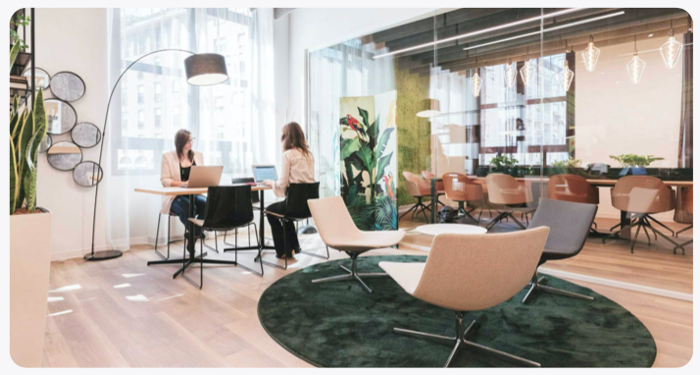 В двухэтажном лобби есть все сервисы, которые обычно есть только у отелей: ресепшн, зал ожидания, коворкинг, кабинеты, камеры хранения багажа и т.п.